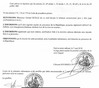 Après plus de deux années de procédure, malgré plusieurs appels et un pourvoi en cassation introduits par son avocat, le juge d'instruction vient de prendre une ordonnance de renvoi devant le tribunal correctionnel, à l'encontre de Gérard Guille, pour diffamation envers particuliers.