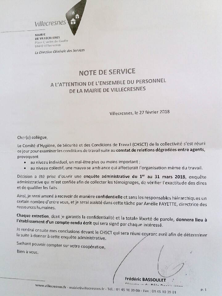 - Les agents (surtout ceux qui ont lancé les alertes bien sûr) vont “comparaître” devant le DGS et la DRH, sans témoin, sans personne pour les assister. Au moment où ces personnes pourraient être amenées à témoigner face à la justice, la méthode interpelle.